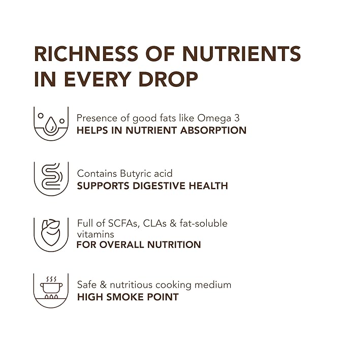- NUTRITIOUS TO THE CORE: It is rich in omega-3 and omega-6, which are essential for human body functioning. Being rich in vitamins A, E, K, and conjugated linoleic acid along with antioxidants, it's a great choice for your body. It is rich in butyric acid that improves digestion, and reduces the accumulation of toxins in the body.