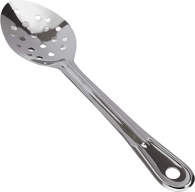 Super Strong, Ergonomic 11 in Serving Spoon 1 Pk. Big, Perforated Stainless Steel Spoons for Cooking, Baking and Basting. Best Kitchen Flatware for Buffet and Banquet Service in Restaurants and Homes