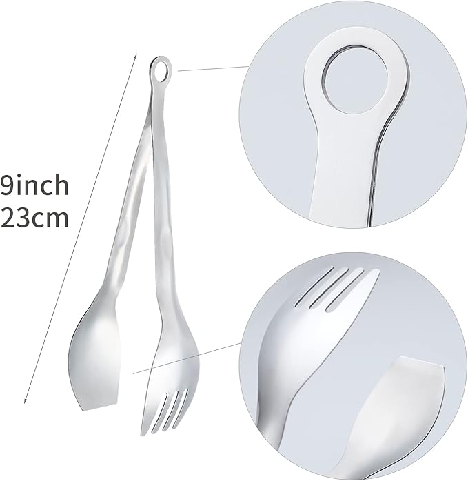 - New Standard - 9 Inch serving tongs, fork-shaped design, non-slip easy to grip and clamp fine. With the round ring design at the top edge, excellent for hanging and easy storage