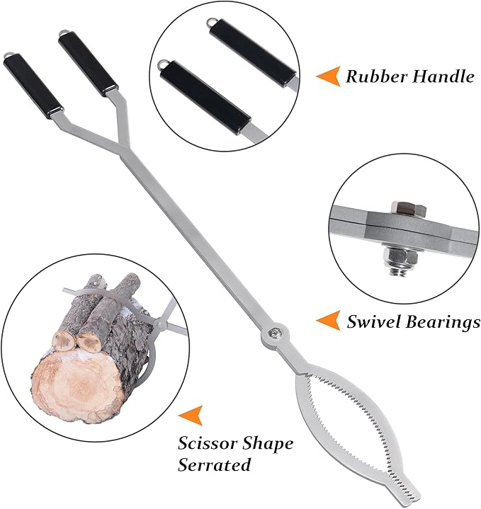 - Log Claw Tongs: Easily Grab Larger Logs, hold heavy logs without bending, Help You Away From the Danger of High Temperature,Fire Pit and Fireplace Accessories for Indoor and Outdoor Use