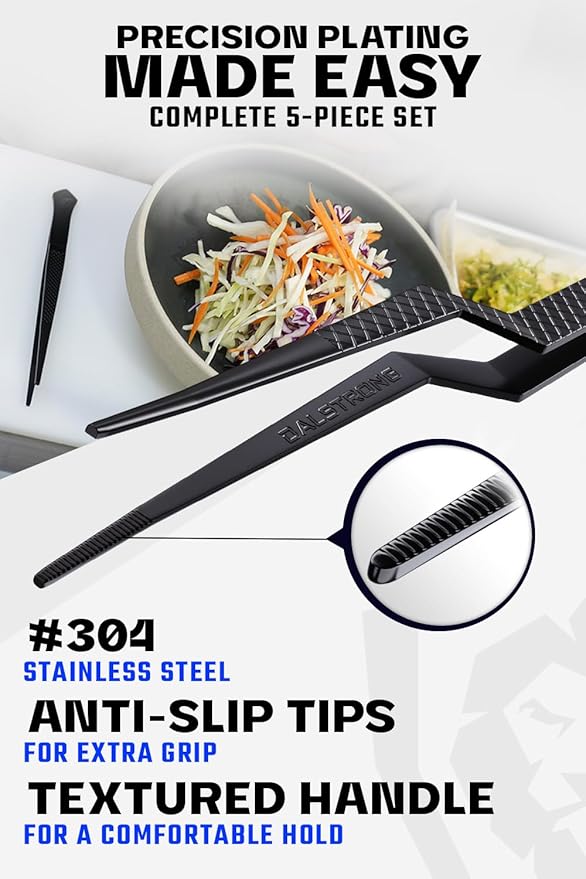 DALSTRONG Professional Food Tweezers-5 Piece Set- High-Precision Tweezer Tongs - Black Titanium Coating - Plating, Culinary Fine Use -304 Stainless Steel- Metal Kitchen Tongs