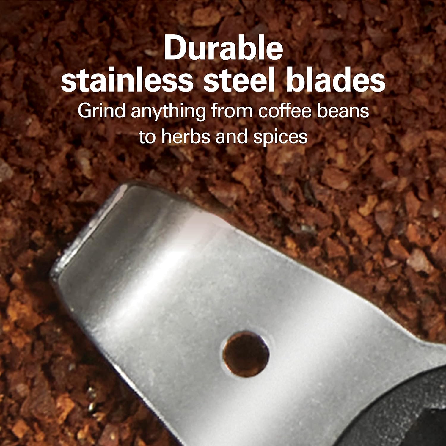 - DURABLE STAINLESS STEEL BLADES: With the durable stainless steel blades, this small coffee grinder makes easy work of grinding everything from coffee beans to herbs and spices.