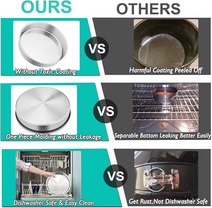 - 【HEALTHY MATERIALS】P&P CHEF round baking pan set is made of high quality stainless steel, Without any harmful coatings peeling off at any temperatures, Healthy for your daily using, More environmental than disposable foil, The great replacement for aluminum and coated pans