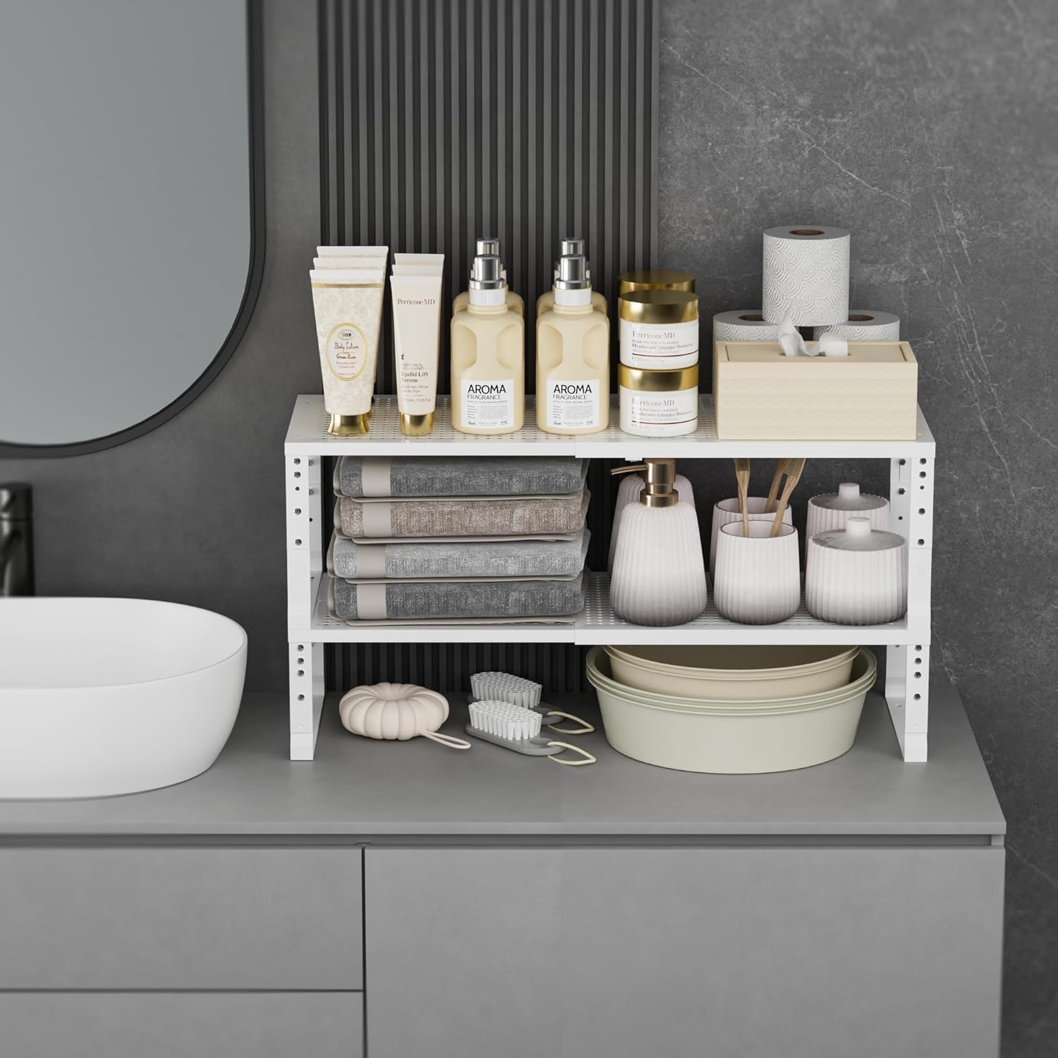 - ā[Multi-purpose]This Shelf can be used in various scenes of your house including cabinets,bathroom,dressing table or under a sink. Easily organizing your cabinets for the plates, bowls, snacks, books, foods,body lotion and other else.
