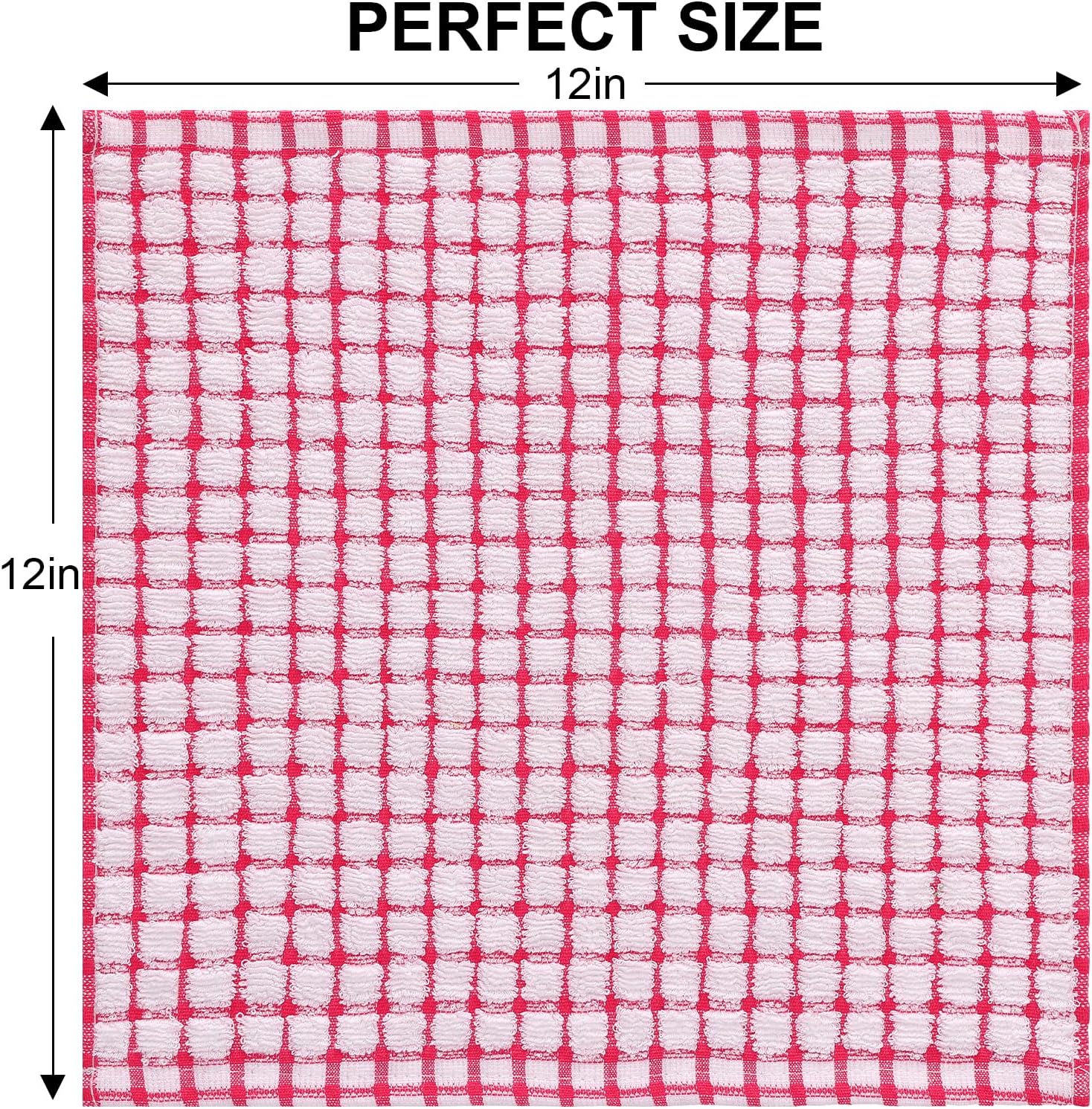 Kitinjoy Cotton 8 Pack Terry Kitchen Dish Cloths, 12 x 12 Inches Super Soft and Absorbent Dish Rags, Quick Drying Dish Towels for Washing Dishes, Red