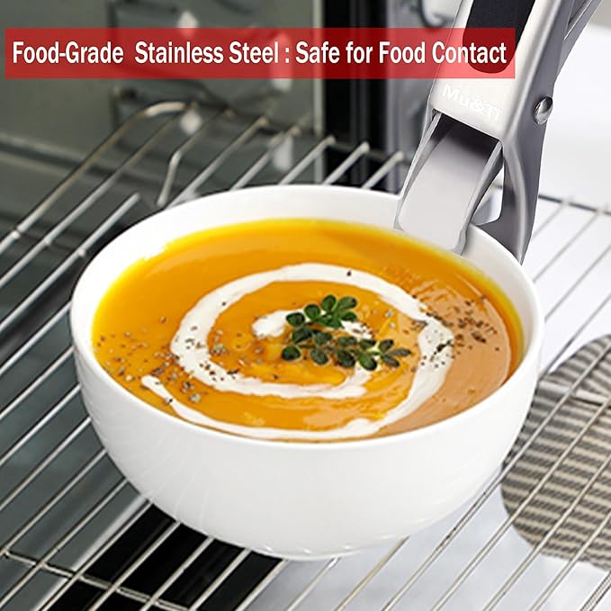 - [Multi-Functional] - This hot bowl dish plate gripper clip is perfect for clamping hot and smooth container in narrow environments. Suitable for carrying hot plates, pots, bowls, dishes and tray of any sizes and shapes from oven, cooker, boiling pots safely. By the way, it's also a bottle opener.