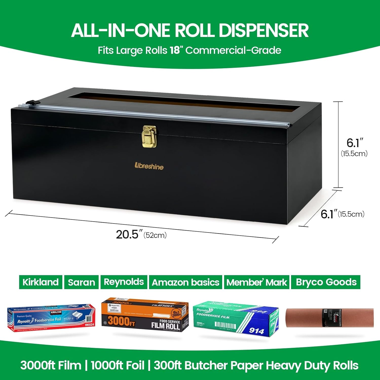 - Fits 18" Bulk Rolls Perfectly — Holds up to 3000ft plastic wrap, 500-1000ft foil rolls, or 225ft butcher paper (compatible with Costco Kirkland, Sam’s Club, Saran, Reynolds, and most bulk brands). No more struggling to find a dispenser that fits oversized rolls!