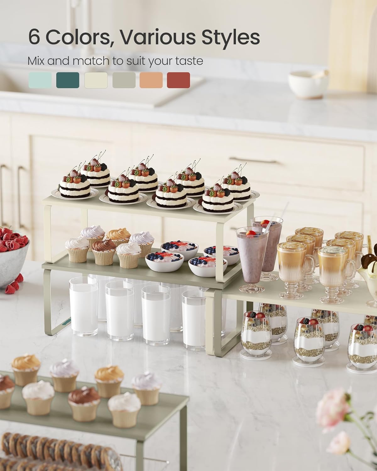 - [Versatile] They can be used in more than just the kitchen! Use them in the dining room as a way to elevate your table centerpieces, on your bedroom desk to organize your items, or even in your bathroom to neatly store your bathroom essentials