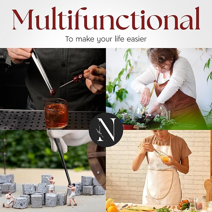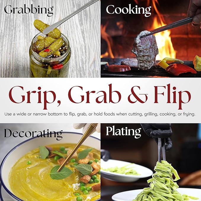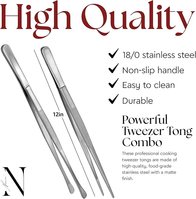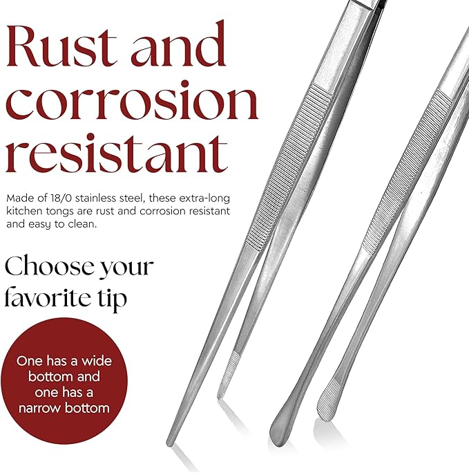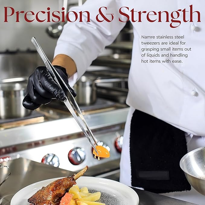 Namre' Tweezer Tongs for Cooking -Plating - 2 Pack Stainless Steel Cooking Tongs - Chopstick Precise & Strong Chef Tweezers for Food & Small Objects - 12 Inch - (Silver) Holiday and hostess gift.