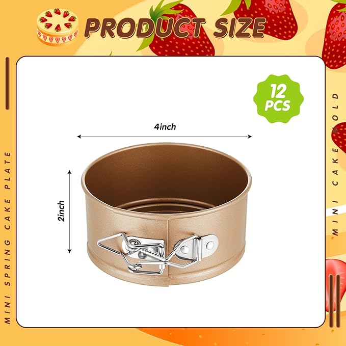 Sunnyray 12 Pcs 4 Inch Springform Pan for Baking Mini Cheesecake Pans with Removable Bottom Nonstick Leakproof Round Cake Mold Spring Form Molds for Mini Cheesecake Pizza and Quiches (Gold)