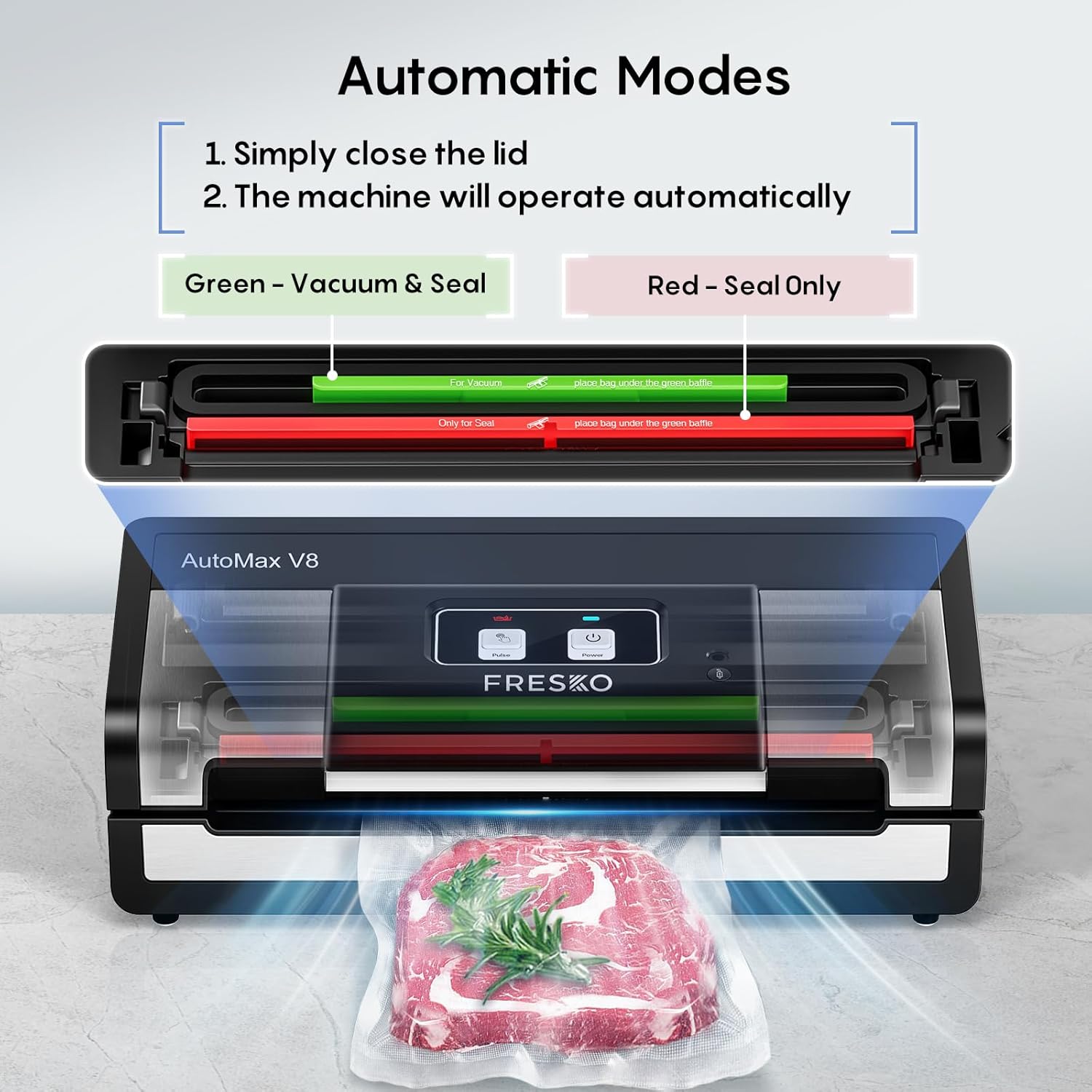 - 【Superior Performance/Low Noise】With powerful suction and exclusive sealing technology, our vacuum sealer effectively seals up to 50 bags continuously within 20 minutes. It is compatible with all brands of vacuum sealer bags. The 2025 newly upgraded noise-control technology makes vacuum sealer run quietly