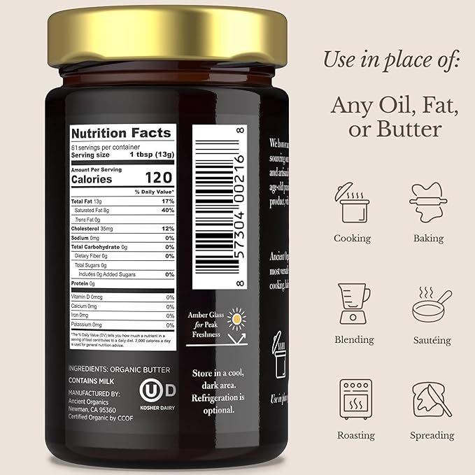 - ARTISAN MADE ORGANIC GRASS FED GHEE - Ancient Organics takes great care in our ingredient selection and preparation method. We are committed to making ghee of uncompromising quality