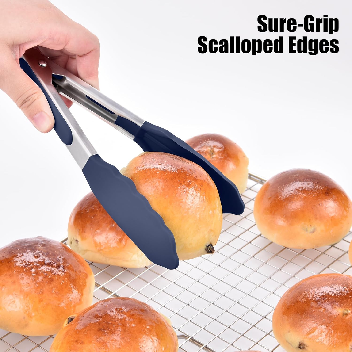 Doosu Kitchen Tongs for Cooking - 600°F Heat Resistant Food Tong with Non-Scratch Silicone Tips, Heavy Duty Stainless Steel Locking Tong for BBQ, Grilling Steak, Serving Salad Pasta (7in, Navy Blue)