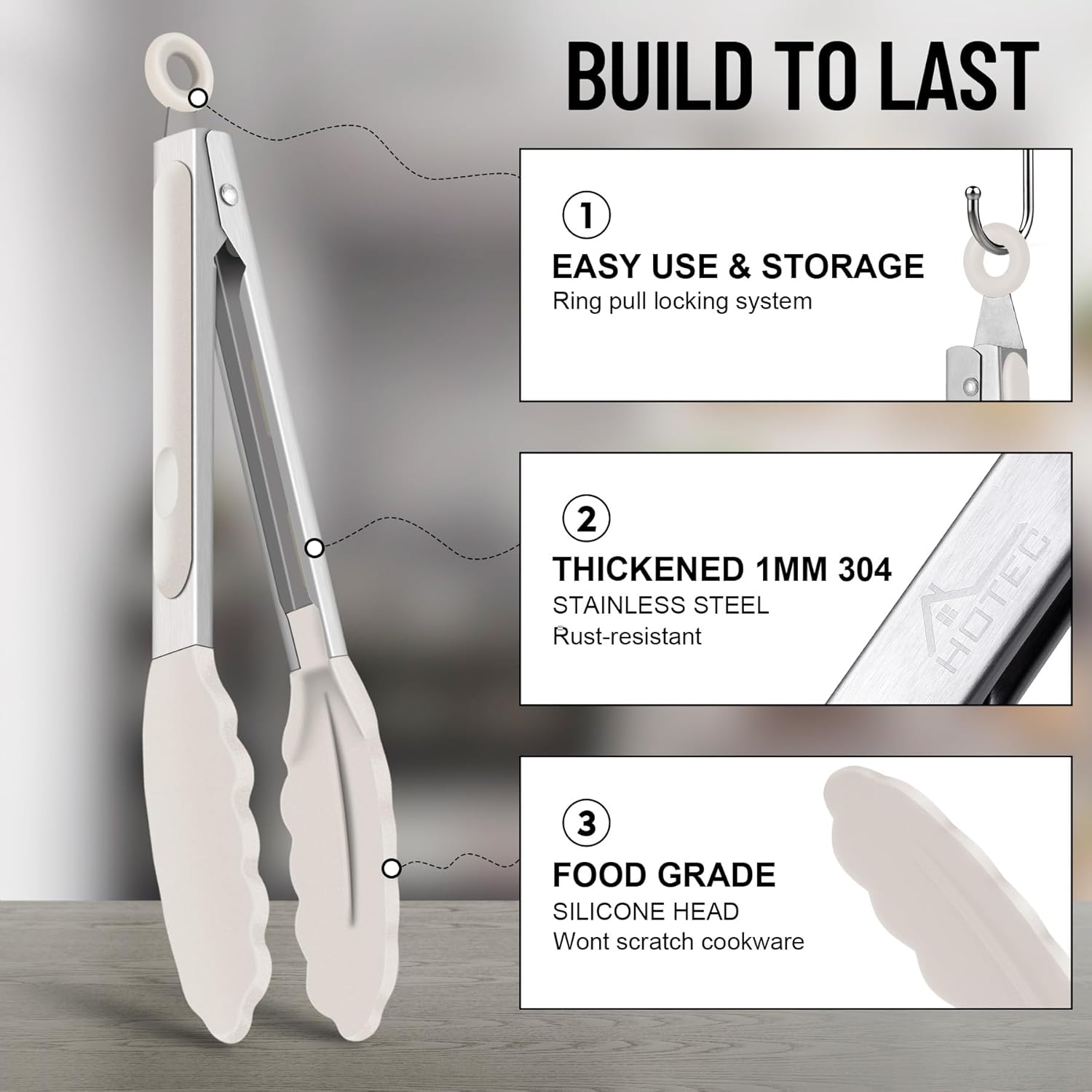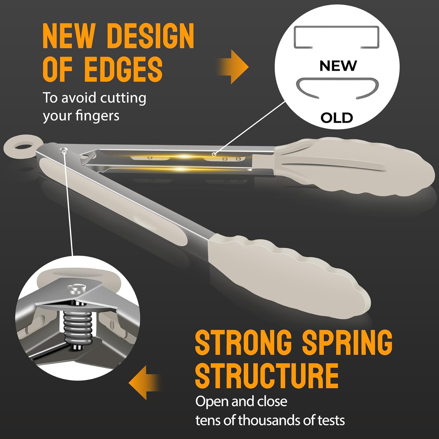 - ENGINEERING FOR SAFETY: Hotec Kitchen Tongs, Updated new design pattern for the handle, better protects your hands from cutting by the edge when you grip the handle. Easy to control the handle and to eliminate wobbling & any risk of burning your hands.