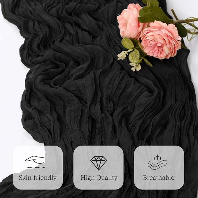 12 Pack Black Cheesecloth Table Runner 17x108 Inch Semi Sheer Boho Gauze Cheese Cloth Fabric Table Runners, for Wedding Party Baby Shower Birthday Home Decor Garden Farmhouse