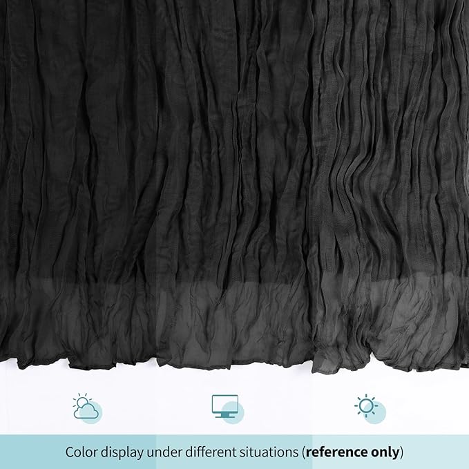 - 【12 Packs 9ft Table Runners】The package include 12 packs 9ft length black table runner, the quantity is sufficient for your daily use and baby shower, wedding or your parties decorations. All the black cheesecloth table runner are 17 inches wide and 108 inches long, which is large enough to cover most kinds of tables, or be put together for longer tables. They can also be used as decoration for backdrop draping, ceiling draping, chair cover sashes and gift wrapping, etc