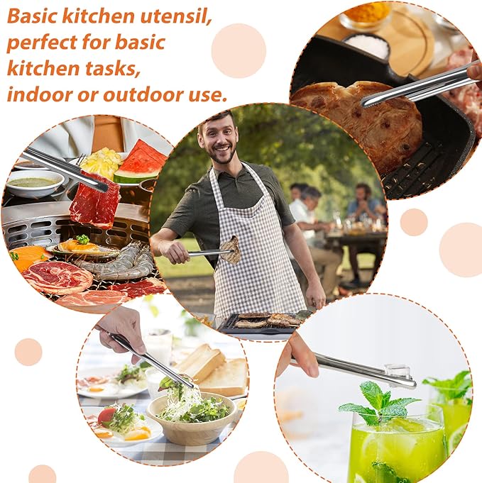 - PROFESSIONAL CHEF QUALITY MATERIAL - Our kitchen tweezers are manufactured from high quality stainless steel, have good rust and heat resistance. They are durability and reusable which have a smooth surface can avoid food residue, lightweight and easy to handle!